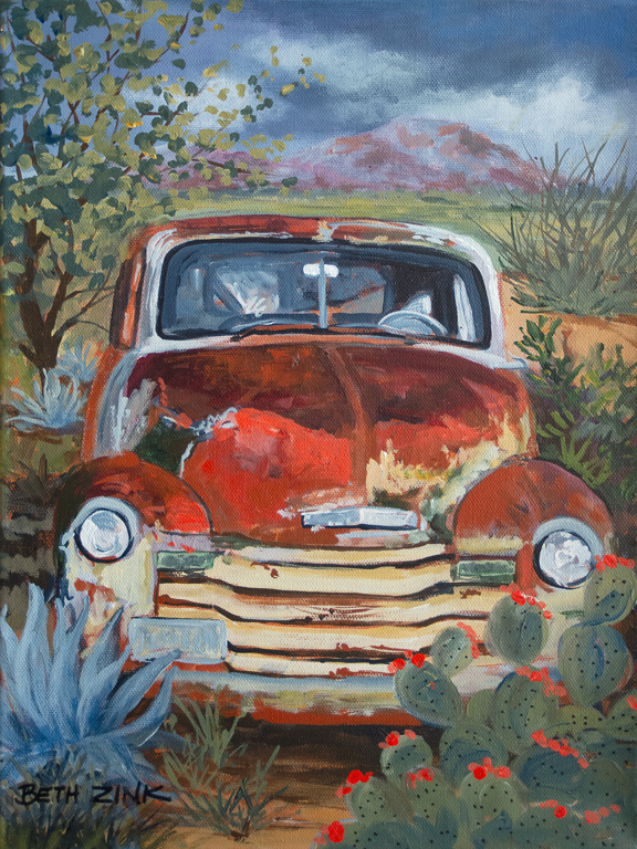 Typical themes have been Cactus Flowers and Plants, Desert Landscapes, Rocks & Streams, Barns, Aspen Trees, Vintage Vehicles, and Sunsets.